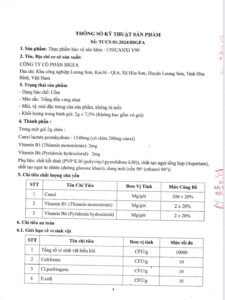 • Vitamin B1 ( Thiamin mononitrate ) : 2 mg